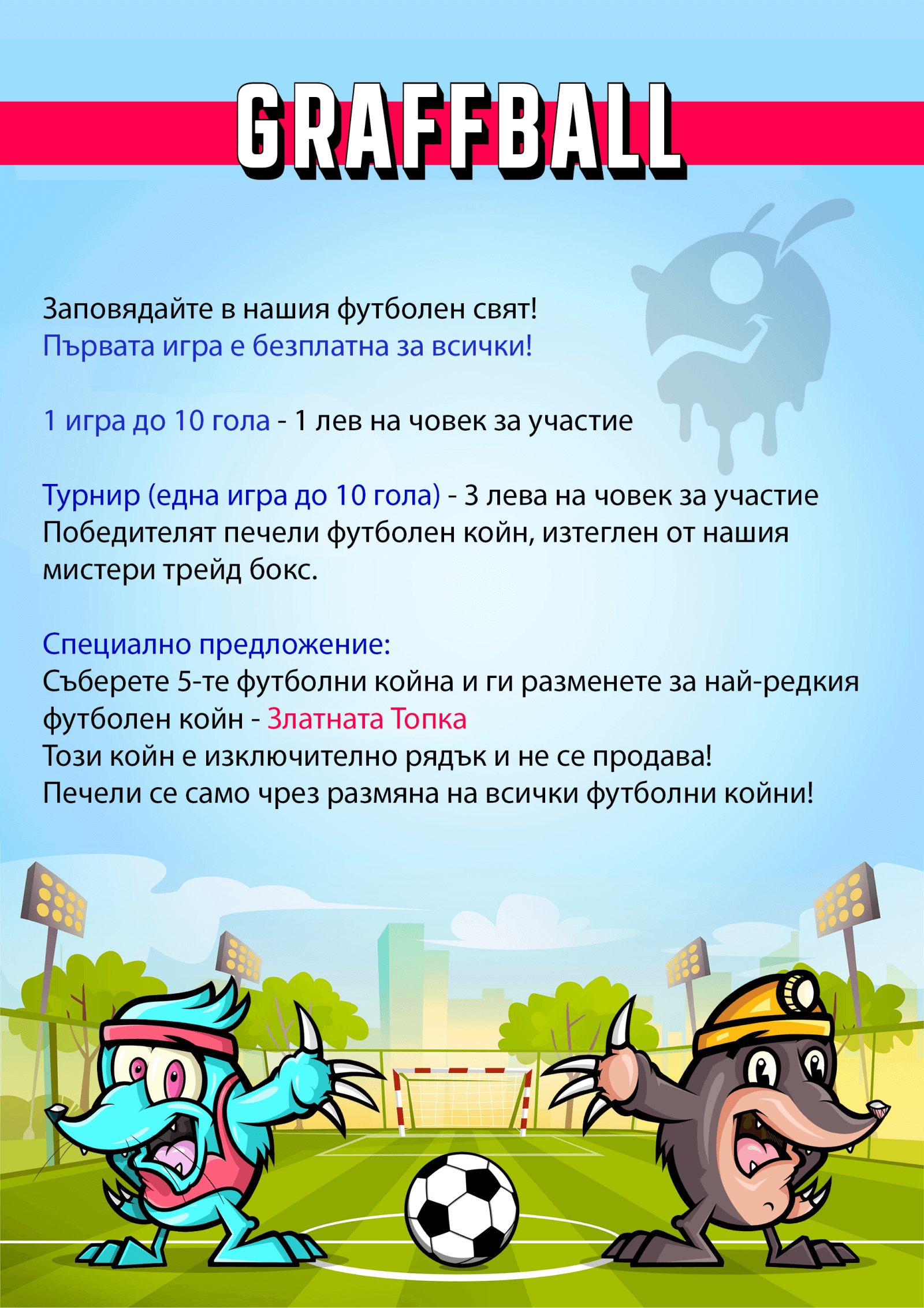 GraffBall е подходяща за всички възрасти. Независимо дали обичате футбола или не, или дали сте новачки или професионалисти, тази игра може да ви направи истински футболни звезди и да ви предложи забавление до изгрев на стола. Но за да разберете истинското вълнение, трябва да я опитате сами!